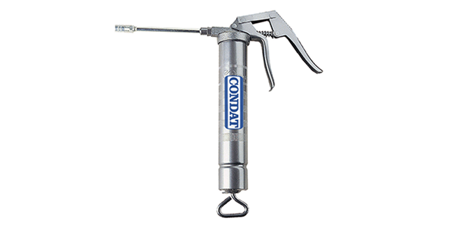 La pompe à graisse cartouche standard avec sa clé d’ouverture rapide est l'accessoire indispensable pour les opérations manuelles de remplissage.